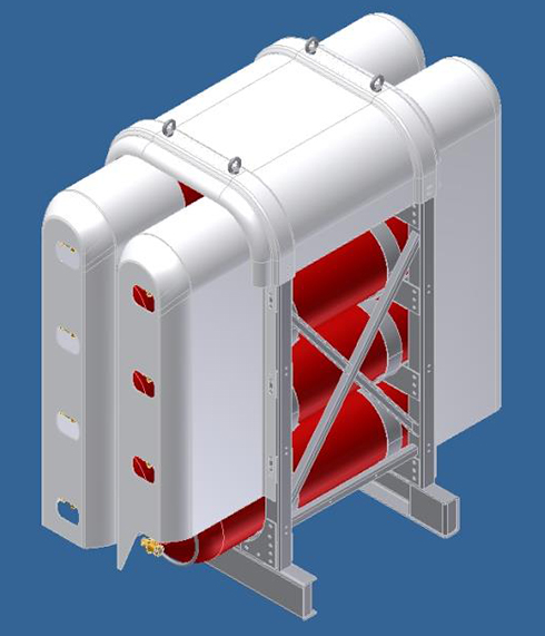 根据CNG气瓶的类型不同,供气系统在重量和总供气量上有一定的差别,如下表所示,不同类型的气瓶供气系统,可降低系统自重1000Kg。随着天海公司CNG气瓶的不断更新,天海公司将根据客户的需求,设计不同的安装和气瓶组合方案。