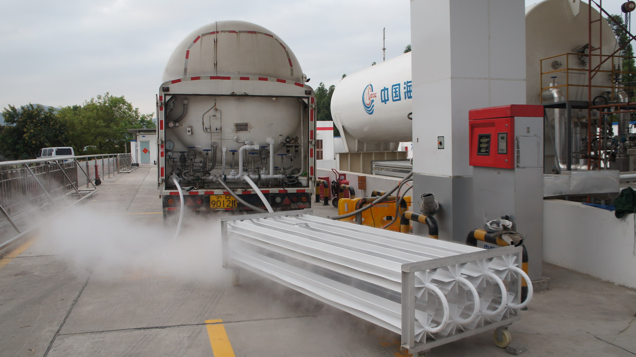 L-CNG加气站是LNG与CNG两种加气方式的有机组合,是一种正在兴起、具有良好推广应用前景的加气站类型。它以液相、低温的天然气进站,通过液相泵加压、气化后实现对汽车加气,无需高耗电量和噪音大的气体压缩机,站内用能较少,因而加压效率高、运行费用低。